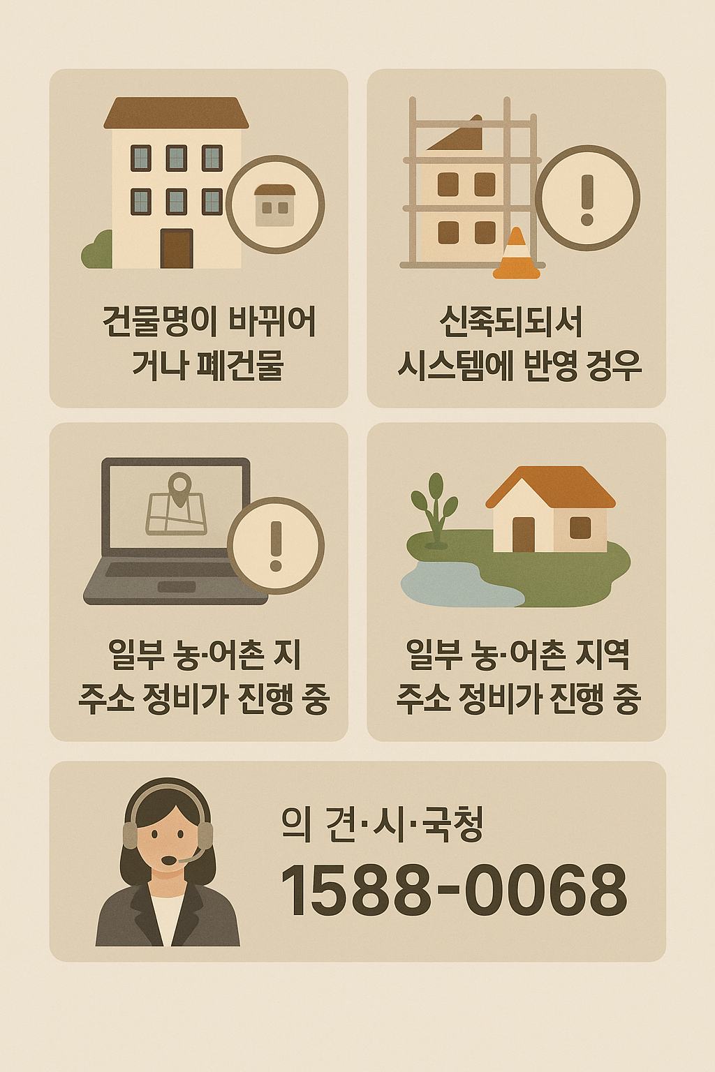 - 일부 농·어촌 지역 주소 정비가 진행 중인 경우