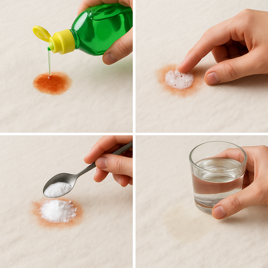 짬뽕국물은 단순한 국물 얼룩이 아니라 고춧기름 + 기름기 + 붉은 색소가 동시에 섞인 복합 얼룩이기 때문에 방법을 잘못 선택하면 제거가 더 어려워집니다.