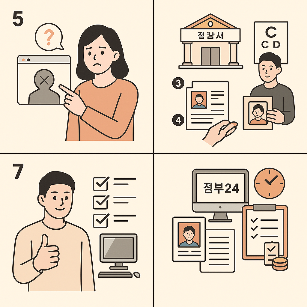 특히 1종 면허는 시력·청력 검사가 필수이므로 시간 여유를 두고 방문하세요.