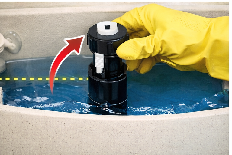 만약 물이 멈추지 않고 계속 유입된다면, 수위가 너무 높거나 부력 장치 고정이 불안정한 경우일 수 있습니다. 이때는 위치를 소폭 낮추거나, 노후된 부품 교체를 고려해야 합니다.