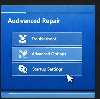컴퓨터 전원을 켠 후 로고가 나타날 때 전원 버튼을 길게 눌러 강제 종료를 2~3회 반복합니다. 이후 자동 복구 화면이 나타나면 “고급 옵션”을 선택합니다. 이후 절차는 문제 해결 → 고급 옵션 → 시작 설정 순으로 동일하게 진행됩니다.