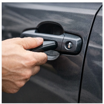 분리한 물리 키를 이용해 운전석 도어 손잡이 아래에 있는 키 홀에 삽입하면 수동으로 문을 열 수 있습니다. 일부 차량은 키 홀이 커버로 가려져 있으니, 손잡이 끝부분을 살짝 분리해야 할 수 있습니다.