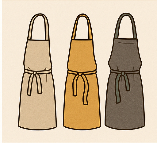- 짧은 앞치마: 허리만 보호, 활동이 자유롭고 가벼워요.