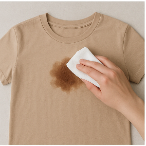 커피 얼룩이 오래되어 단단하게 남았을 경우에는, 따뜻한 물에 베이킹소다를 녹인 용액으로 톡톡 두드리듯 처리한 뒤 세탁하면 효과적이에요. 주의할 점은 절대 소금이나 강한 알코올, 레몬즙, 염소계 표백제 같은 자극성 물질은 사용하지 마세요—섬유가 손상되거나 색이 바랠 수 있어요.