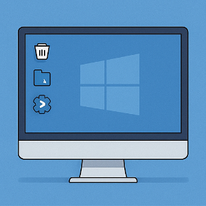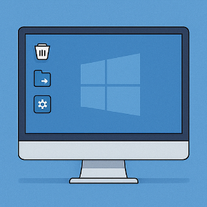 • 설정 → 개인 설정(Personalization) → 테마(Themes) → “바탕화면 아이콘 설정(Desktop icon settings)”으로 들어가서 필요한 시스템 아이콘(내 PC, 휴지통 등)을 체크해 보세요.