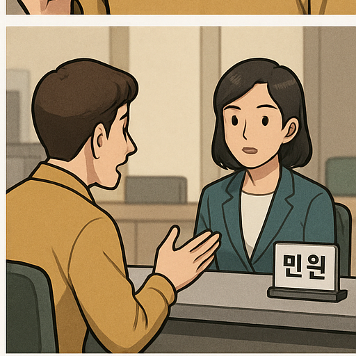 - 번호표를 뽑고 민원 창구로 가셔서