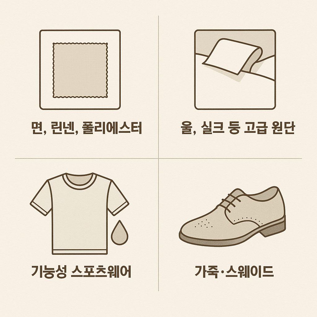 일반 패브릭 잉크에는 효과적이며, 유성 매직은 1~2회 반복이 필요할 수 있습니다.