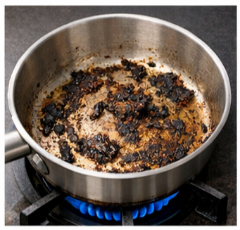 - 2단계: 음식물이 바닥에 눌어붙은 상태