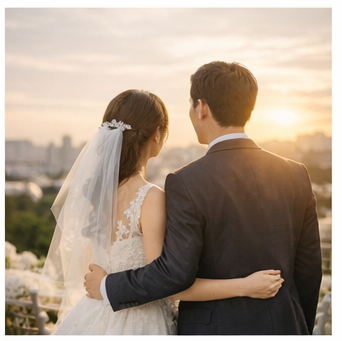 “저희 두 사람의 새로운 시작을 축복해 주셔서 진심으로 감사드립니다. 보내주신 따뜻한 마음을 오래도록 간직하며 서로를 존중하고 사랑하는 부부가 되겠습니다.”