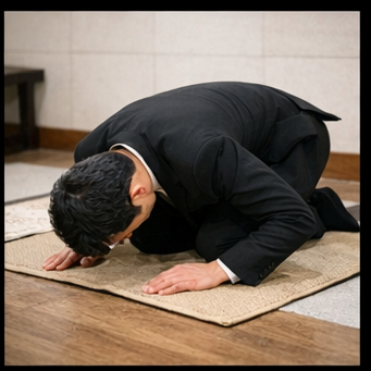 남성 절 방법은 오른손을 위로 하여 두 손을 포갠 뒤 무릎을 꿇고 절합니다. 이마가 손등 위에 닿도록 깊이 숙이는 것이 중요합니다.