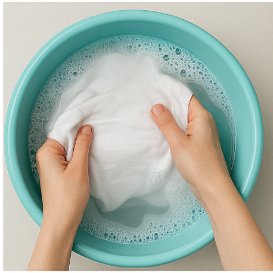 - 그다음 미지근한 물(약 30℃) + 액체 세제로 담금 세탁을 준비하세요. 오래된 얼룩일수록 효과가 좋아요. 예시 비율은 따뜻한 물 1쿼트(약 950mL) + 주방세제 ½작은술로 15분 전처리입니다. 손끝으로 가볍게 비벼주면 침투가 빨라집니다.