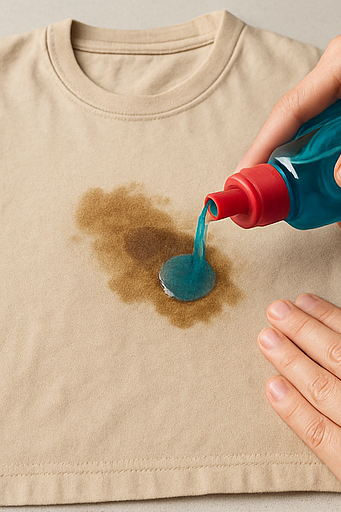 주방 세제는 기름을 분해하는 데 아주 효과적이에요. 기름 얼룩이 생긴 부분에 주방 세제를 소량 덜어 부드럽게 문질러주면 기름이 분해되면서 얼룩이 사라져요. 그 후, 미지근한 물로 헹궈주면 깨끗하게 세탁할 수 있어요.