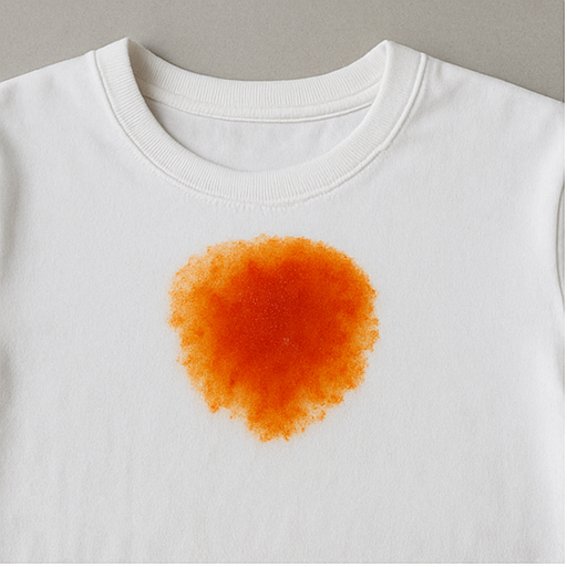 옷에 닿는 순간 색소와 기름 성분이 섬유 사이로 파고들어 고착됩니다. 다음과 같은 이유로 세탁이 어려워집니다.