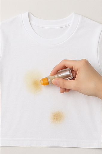 립스틱·선크림 같은 기름 성분은 일반 세탁만으론 잘 제거되지 않아요.