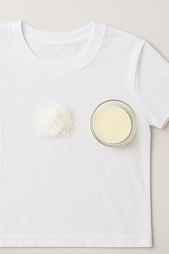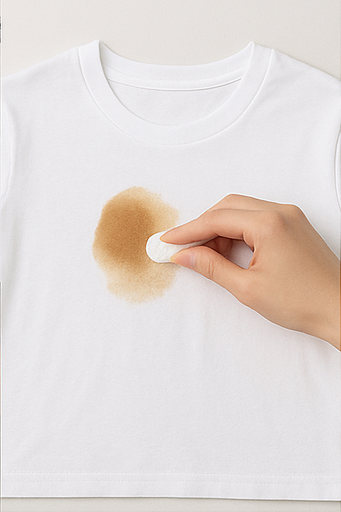 흰색 면·폴리에스터 소재는 색소가 빠르게 스며드는 구조라 얼룩이 생기면 세탁만으로 잘 빠지지 않아요.