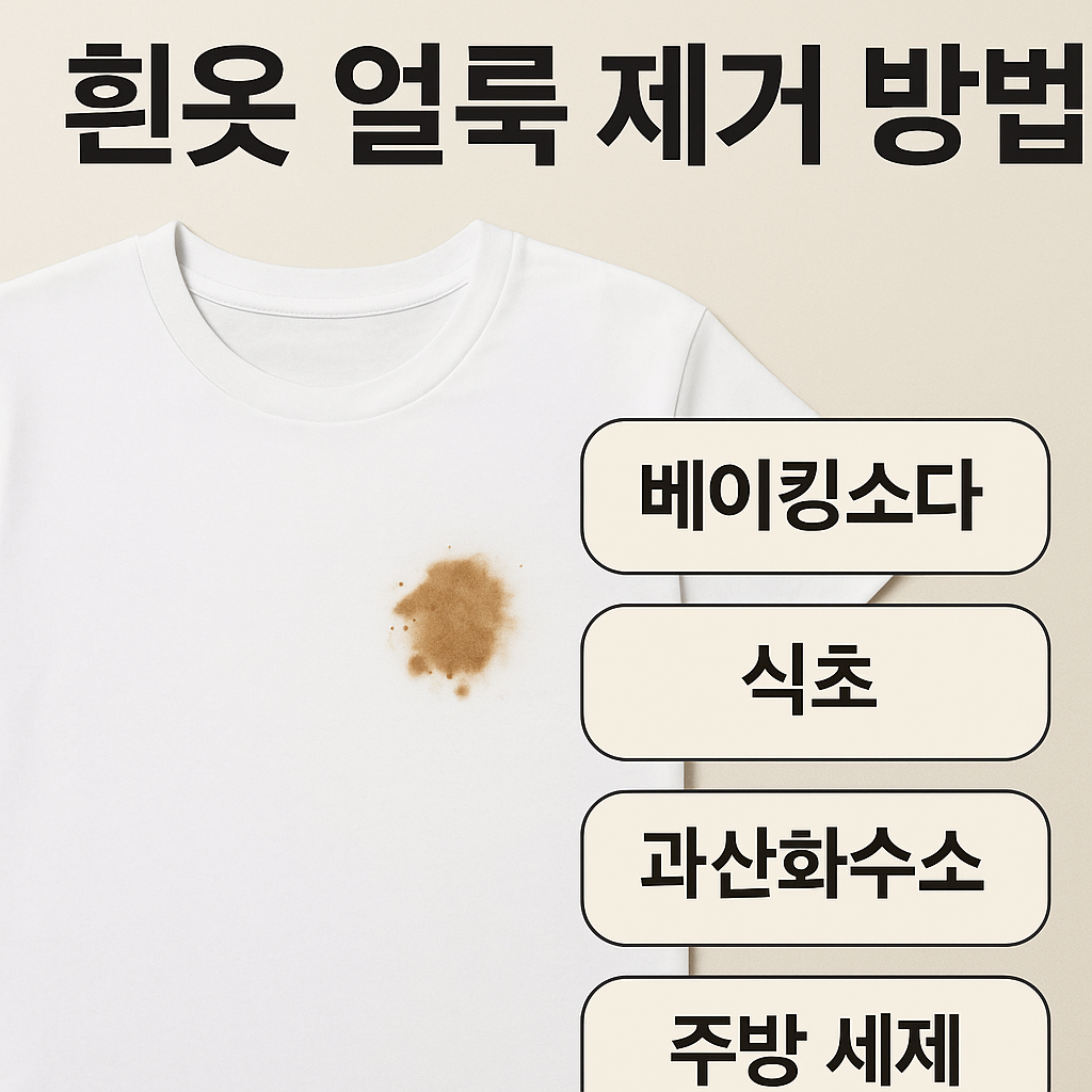 커피·피·김치국물·땀 얼룩까지, 집에 있는 재료만으로 해결!흰옷은 작은 오염도 금방 티가 나고, 시간이 지나면 얼룩이 섬유 속까지 깊이 스며들어 제거가 더 어려워져요. 오늘은 가장 효과적인 흰옷 얼룩제거방법을 얼룩 종류별로 쉽고 정확하게 정리해드릴게요. 처음 해보는 분도 그대로 따라 하면 충분합니다.1. 흰옷이 쉽게 누래지고 얼룩이 남는 이유 흰색 면·폴리에스터 소재는 색소가 빠르게 스며드는 구조라 얼룩이 생기면 세탁만으로 잘 빠지지 않아요.또한 땀, 세균, 세제 찌꺼기가 반복적으로 쌓이면 흰옷이 누렇게 변색되기 쉽습니다.👉 가장 중요한 원칙: 얼룩은 발견 즉시 제거하기! 2. 얼룩 종류별 흰옷 얼룩제거방법 ✔ 2-1. 커피·차 얼룩커피를 흘렸다면 당황하지 말고 아래 순서로 처리하세요.1) 흐르는 물..